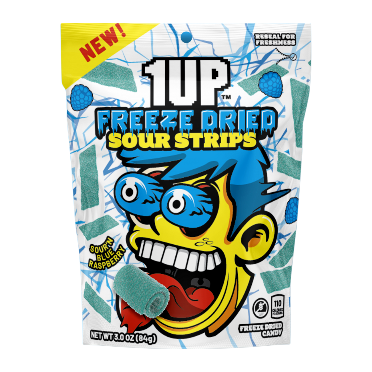 Bite into a bold twist on a classic with 1 Up Freeze-Dried Sour Strips! These tangy green apple, rainbow and blue raspberry gummy strips are freeze-dried to create a light, crunchy texture that melts in your mouth while amplifying their sweet-and-sour punch. Fun, zesty, and full of flavour, they’re perfect for candy lovers who crave something exciting and unique.