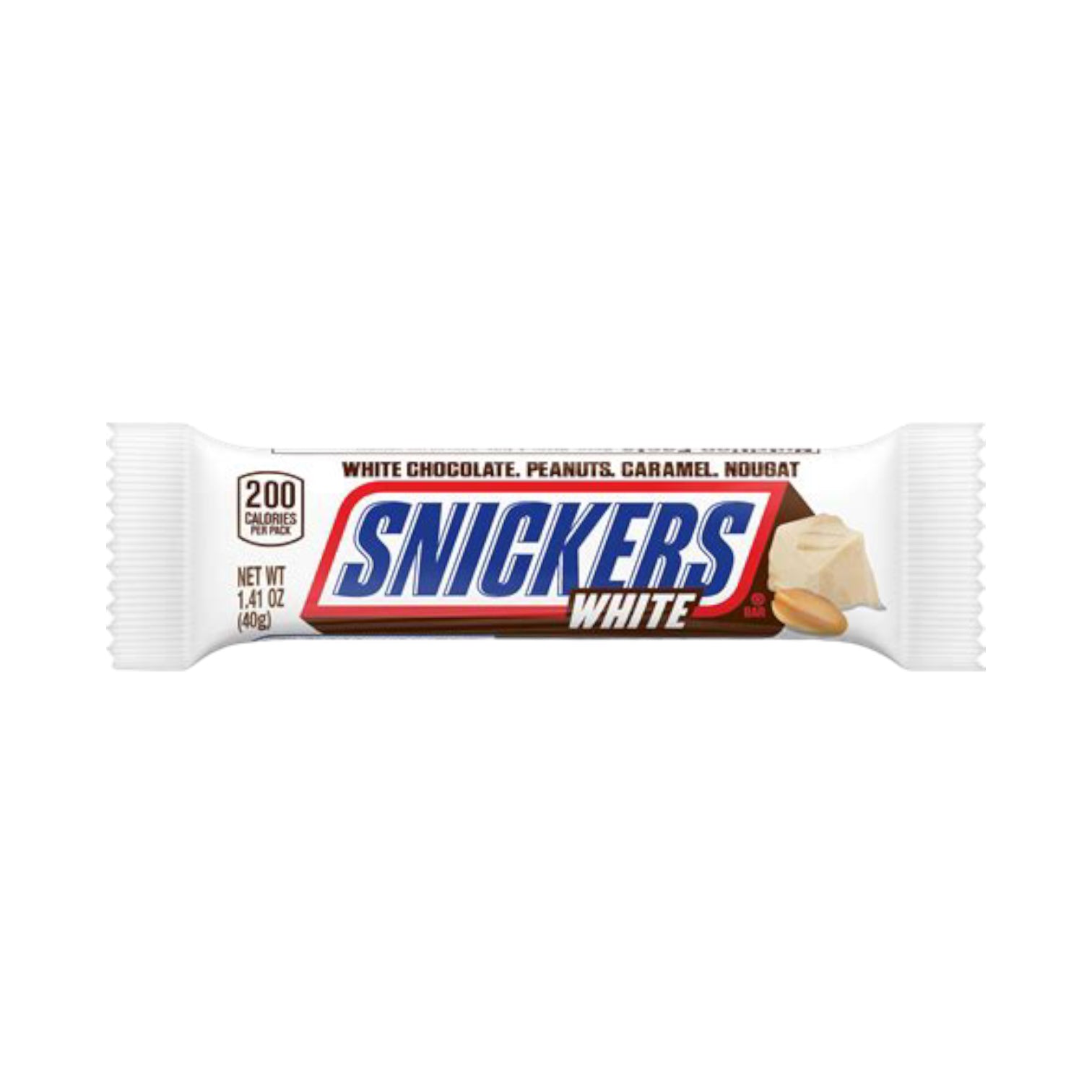 Snickers White brings a creamy twist to the classic candy bar you love. Smooth white chocolate coating wraps around layers of roasted peanuts, rich caramel, and fluffy nougat for a satisfying sweet and salty combination.